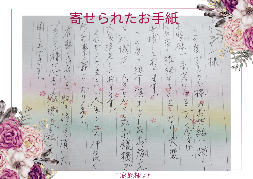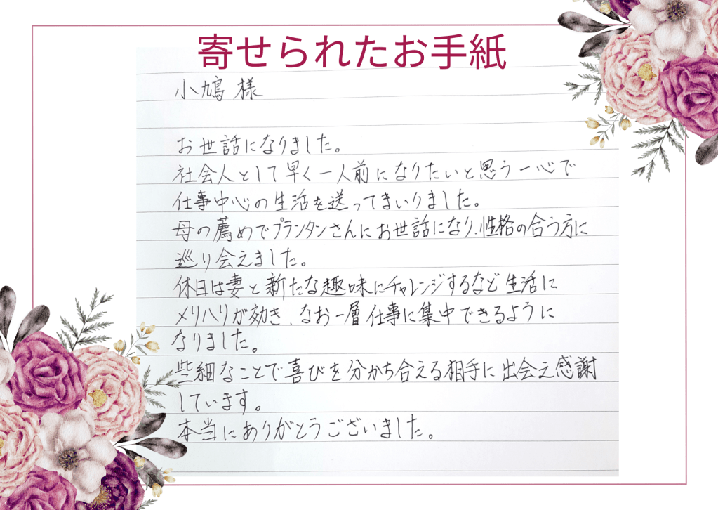 幸せの近況をLINEや手紙で報告いただく度に温かな気持ちになります。