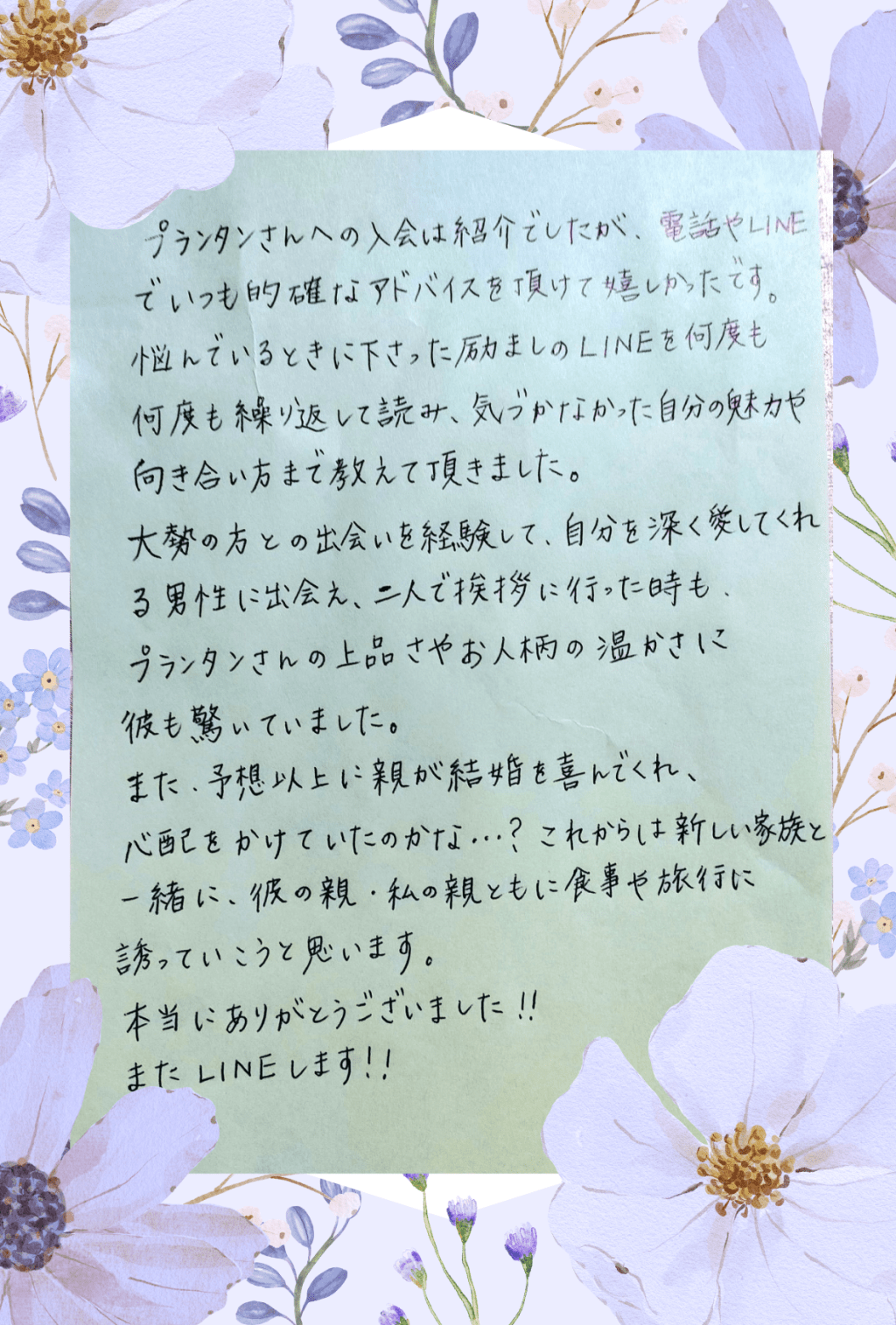 ご成婚して退会なさった皆様全員、素敵な恋をして信頼し合える家庭を築いています。