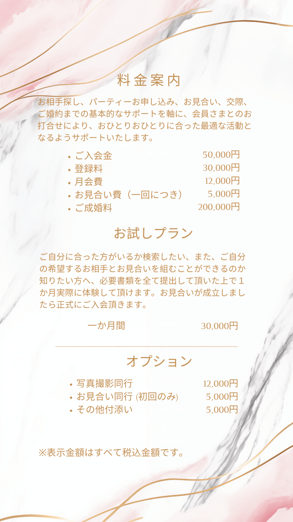 結婚相手との出会いから成婚までを丁寧にサポートいたします。